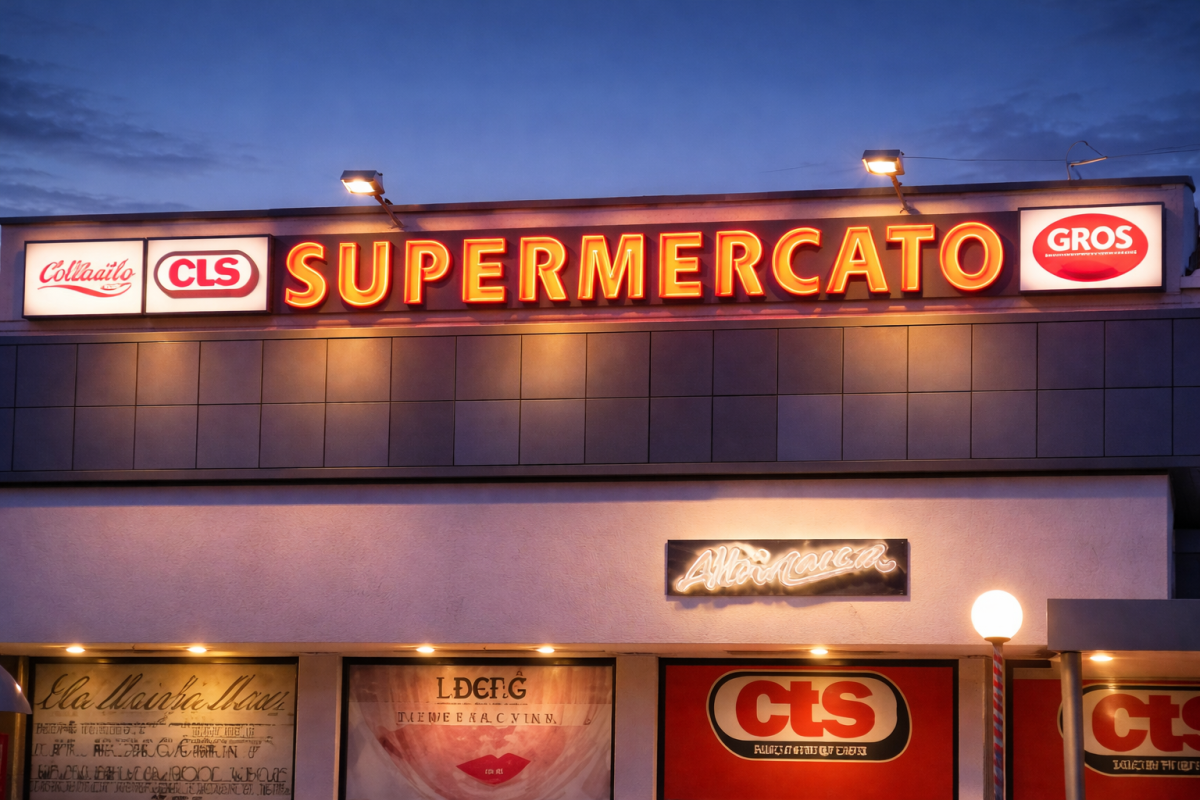 Produzione di insegne in formati giganti per capannoni, industrie, centri commerciali, supermercati e ogni esigenza.