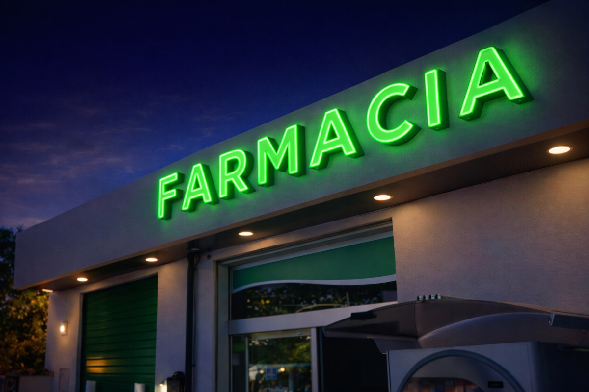 Il classico e storico modello “pixel” in verde, scorrevole e non. Croce farmacia led programmabile inclusa